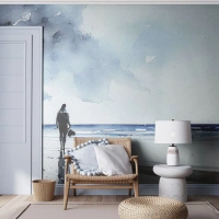 Selbstklebende Fototapete Deluxe Sticker - Gespräch mit dem Meer - Einsam, Mann, Küste - 300x210 cm