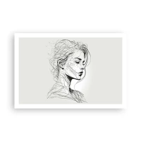 Poster - Ein zartes Frauenporträt im minimalistischen Grafikstil. - 100x70cm - Porträt im Gedanken - Moderne Wanddekoration für Wohnzimmer und Schlafzimmer ARTTOR