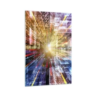 Glasbild - Bild auf glas - Dynamische Lichter in einem futuristischen Korridor - 70x100cm - Leuchtender Korridor - Moderne Wanddekoration für Wohnzimmer und Schlafzimmer ARTTOR