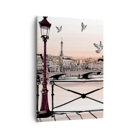 Bild auf Leinwand - Leinwandbild - Pariser Ansicht mit einer Laterne und einer Brücke - 50x70cm - Über den Dächern von Paris - Moderne Wanddekoration für Wohnzimmer und Schlafzimmer ARTTOR