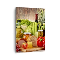 Fototapete Premium Canvas - Buntes Obst, Gemüse und Lebensmittel - 100x70cm - Geräuchert, gebacken und eingelegt - Moderne Wanddekoration für Wohnzimmer und Schlafzimmer ARTTOR
