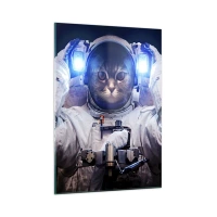 Glasbild - Bild auf glas - Ein katzenköpfiger Kosmonaut im Weltraum - 50x70cm - Houston, du hast ein Problem - Moderne Wanddekoration für Wohnzimmer und Schlafzimmer ARTTOR