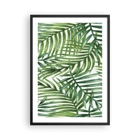 Poster in einem schwarzem Rahmen - Palmen in einem minimalistischen botanischen Muster - 50x70cm - Unter dem grünen Baldachin - Moderne Wanddekoration für Wohnzimmer und Schlafzimmer ARTTOR