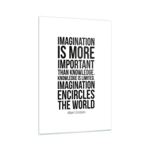 Glasbild - Bild auf glas - Inspirierendes Zitat auf weißem Hintergrund in schwarzer Schrift - 70x100cm - Einstein über die Kraft der Vorstellungskraft - Moderne Wanddekoration für Wohnzimmer und Schlafzimmer ARTTOR