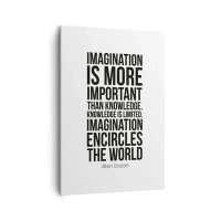 Bild auf Leinwand - Leinwandbild - Inspirierendes Zitat auf weißem Hintergrund in schwarzer Schrift - 70x100cm - Einstein über die Kraft der Vorstellungskraft - Moderne Wanddekoration für Wohnzimmer und Schlafzimmer ARTTOR