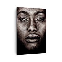 Bild auf Leinwand - Leinwandbild - Porträt eines Gesichts mit einer einzelnen Träne auf schwarzem Hintergrund - 70x100cm - Eine Träne - Moderne Wanddekoration für Wohnzimmer und Schlafzimmer ARTTOR