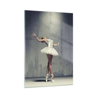 Glasbild - Bild auf glas - Eine Ballerina in einem weißen Kleid vor einer rohen Wand - 50x70cm - Leicht wie ein Vogel - Moderne Wanddekoration für Wohnzimmer und Schlafzimmer ARTTOR