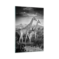 Glasbild - Bild auf glas - Schwarz-weiße Silhouetten zweier Giraffen in der Savanne - 80x120cm - Hohe Sphären in Afrika - Moderne Wanddekoration für Wohnzimmer und Schlafzimmer ARTTOR