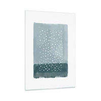 Glasbild - Bild auf glas - Ein abstraktes Gemälde in Blautönen mit weißen Punkten. - 50x70cm - Auf Blau gewachsen - Moderne Wanddekoration für Wohnzimmer und Schlafzimmer ARTTOR