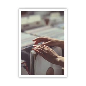 Glasbild - Bild auf glas - Hände blättern durch eine Vinylsammlung - 70x100cm - Auf der Suche nach Emotionen - Moderne Wanddekoration für Wohnzimmer und Schlafzimmer ARTTOR