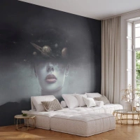 Fototapete Premium Sand - Und die Planeten spielen verrückt ... - Abstraktion, Das Gesicht einer Frau, Kosmos - 400x280 cm