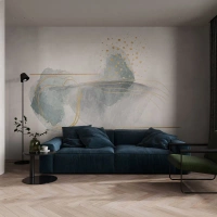 Selbstklebende Fototapete Deluxe Sticker - Über das Verhältnis von Grau und Gold - Abstraktion, Stück, Interessante Formen - 300x210 cm