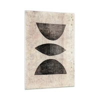 Glasbild - Bild auf glas - Schwarze geometrische Formen auf beigem Hintergrund - 50x70cm - Ethnische Abstraktion - Moderne Wanddekoration für Wohnzimmer und Schlafzimmer ARTTOR