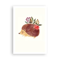 Glasbild - Bild auf glas - Ein süßer Igel mit einem Apfel und Pflanzen im illustrativen Stil - 70x100cm - Und dann magst du mich schon - Moderne Wanddekoration für Wohnzimmer und Schlafzimmer ARTTOR