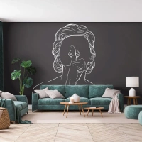 Fototapete Standard Eco - Konturzeichnung einer Frau auf schwarzem Hintergrund, die eine Geste des Schweigens macht - 100x70cm - Schönheit erblüht in der Stille - Moderne Wanddekoration für Wohnzimmer und Schlafzimmer ARTTOR
