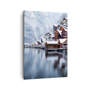 Bild auf Leinwand - Leinwandbild - Winteransicht eines Bergdorfes am See - 50x70cm - In winterlicher Dekoration - Moderne Wanddekoration für Wohnzimmer und Schlafzimmer ARTTOR