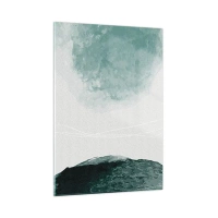 Glasbild - Bild auf glas - Grüne abstrakte Formen auf einem hellen Hintergrund, der an Nebel erinnert - 50x70cm - Begegnung mit Nebel - Moderne Wanddekoration für Wohnzimmer und Schlafzimmer ARTTOR