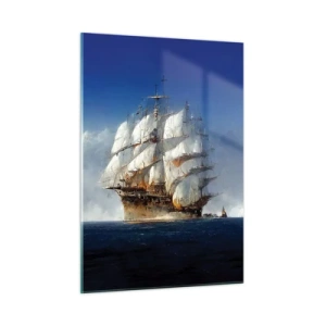 Glasbild - Bild auf glas - Ein Segelschiff auf hoher See inmitten von Seenebel - 50x70cm - Der große Ruhm! - Moderne Wanddekoration für Wohnzimmer und Schlafzimmer ARTTOR