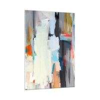 Glasbild - Bild auf glas - Abstrakte Komposition mit bunten Flecken und Strichen - 50x70cm - Gibt es eine Methode? - Moderne Wanddekoration für Wohnzimmer und Schlafzimmer ARTTOR