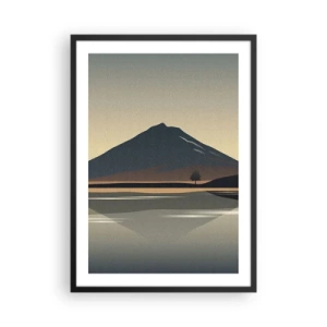 Poster in einem schwarzem Rahmen - Eine minimalistische Berglandschaft mit einer Spiegelung in einem See - 50x70cm - Spiegelreflexion - Moderne Wanddekoration für Wohnzimmer und Schlafzimmer ARTTOR