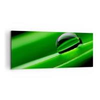 Bild auf Leinwand - Leinwandbild - Nahaufnahme eines Tautropfens auf einem grünen Blatt - 120x50cm - Leben hautnah - Moderne Wanddekoration für Wohnzimmer und Schlafzimmer ARTTOR