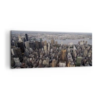 Bild auf Leinwand - Leinwandbild - Blick auf die Metropole mit der untergehenden Sonne - 120x50cm - Das schlagende Herz unserer Zeit - Moderne Wanddekoration für Wohnzimmer und Schlafzimmer ARTTOR