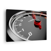 Fototapete Premium Canvas - Nahaufnahme des Drehzahlmessers mit der roten Nadel - 100x70cm - Vollgas! - Moderne Wanddekoration für Wohnzimmer und Schlafzimmer ARTTOR