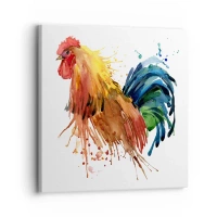 Wanduhr - Glasuhr - Ein Hahn im Aquarellstil mit lebendigen Farben - 30x30cm - Königliches Gewand, königlicher Stolz - Moderne Wanddekoration für Wohnzimmer, Küche und Schlafzimmer ARTTOR