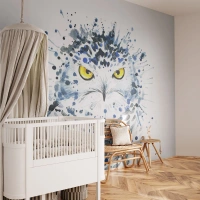 Fototapete Standard Eco - Aquarell Eule mit intensiven gelben Augen - 100x70cm - Direkt in die Augen - Moderne Wanddekoration für Wohnzimmer und Schlafzimmer ARTTOR