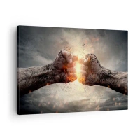 Fototapete Premium Canvas - Geballte Fäuste in einer dynamischen Brandszene - 100x70cm - Steh auf für einen Kampf - Moderne Wanddekoration für Wohnzimmer und Schlafzimmer ARTTOR