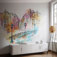 Fototapete Standard Eco - Eine Brücke in romantischer Stadtkulisse - 100x70cm - Das Herz der Stadt - Moderne Wanddekoration für Wohnzimmer und Schlafzimmer ARTTOR