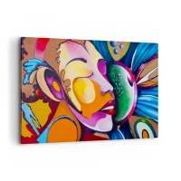 Bild auf Leinwand - Leinwandbild - Eine farbenfrohe Abstraktion mit einem Gesichtsmotiv in einer dynamischen Komposition - 120x80cm - Mit Farbe berühren - Moderne Wanddekoration für Wohnzimmer und Schlafzimmer ARTTOR