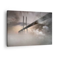 Bild auf Leinwand - Leinwandbild - Eine Brücke über einen Fluss, umgeben von Nebel am Morgen - 70x50cm - Auf dem Fluss, den es nicht gibt - Moderne Wanddekoration für Wohnzimmer und Schlafzimmer ARTTOR