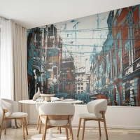 Fototapete Standard Eco - Abstraktes Stadtpanorama in Blau- und Brauntönen - 100x70cm - Ein abgenutzter Stadtwanderweg - Moderne Wanddekoration für Wohnzimmer und Schlafzimmer ARTTOR