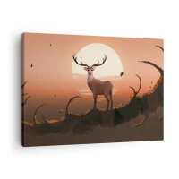 Fototapete Premium Canvas - Ein Hirsch vor dem Hintergrund der untergehenden Sonne und einer surrealen Landschaft - 100x70cm - Diese Nacht ist anders als jede andere - Moderne Wanddekoration für Wohnzimmer und Schlafzimmer ARTTOR