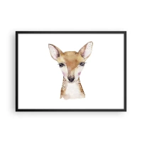 Poster in einem schwarzem Rahmen - Aquarellporträt eines jungen Rehs auf weißem Hintergrund - 70x50cm - Die Natur der Unschuld - Moderne Wanddekoration für Wohnzimmer und Schlafzimmer ARTTOR