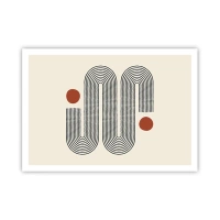 Poster - Geometrisches Muster mit Linien und orangefarbenen Kreisen - 100x70cm - Vom Anfang bis zum Ende - Moderne Wanddekoration für Wohnzimmer und Schlafzimmer ARTTOR