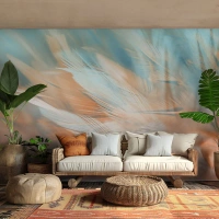 Fototapete Standard Eco - Zarte Federn in Pastelltönen von Blau und Pfirsich - 100x70cm - Im Land der Sanftmut - Moderne Wanddekoration für Wohnzimmer und Schlafzimmer ARTTOR