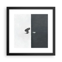Wanduhr - Glasuhr - Eine Kinderfigur mit einem Papierboot vor einem Hintergrund aus kontrastierenden Hälften - 30x30cm - Tolle Expedition - Moderne Wanddekoration für Wohnzimmer und Schlafzimmer ARTTOR