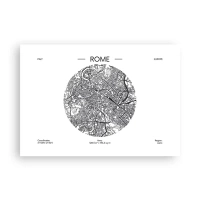 Bild auf Leinwand - Leinwandbild - Eine Karte von Rom im minimalistischen Schwarz-Weiß-Stil - 100x70cm - Anatomie von Rom - Moderne Wanddekoration für Wohnzimmer und Schlafzimmer ARTTOR