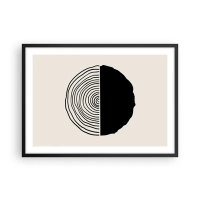 Poster in einem schwarzem Rahmen - Ein abstraktes Schwarz-Weiß-Motiv, inspiriert von einem Holzquerschnitt mit geometrischer Unterteilung. - 70x50cm - Halb und halb - Moderne Wanddekoration für Wohnzimmer und Schlafzimmer ARTTOR
