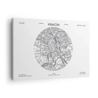 Bild auf Leinwand - Leinwandbild - Eine Karte von Krakau im minimalistischen Stil - 70x50cm - Anatomie von Krakau - Moderne Wanddekoration für Wohnzimmer und Schlafzimmer ARTTOR