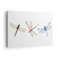 Fototapete Premium Canvas - Drei Libellen in zarten Pastellfarben - 100x70cm - Schwerelose Libellen - Moderne Wanddekoration für Wohnzimmer und Schlafzimmer ARTTOR