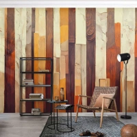 Fototapete Standard Eco - Vertikale Streifen in Baumstamm-Optik in warmen Farben - 100x70cm - Hymne der Waldbäume - Moderne Wanddekoration für Wohnzimmer und Schlafzimmer ARTTOR