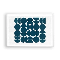 Poster in einem schwarzem Rahmen - Geometrische Formen in Marineblautönen auf weißem Hintergrund - 100x70cm - Kreise und Halbkreise - Moderne Wanddekoration für Wohnzimmer und Schlafzimmer ARTTOR