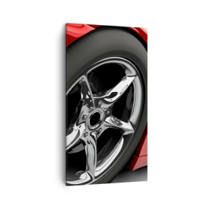 Bild auf Leinwand - Leinwandbild - Roter Sportwagen mit Chromfelge - 50x70cm - Für Schnelligkeit gebaut - Moderne Wanddekoration für Wohnzimmer und Schlafzimmer ARTTOR