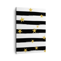 Bild auf Leinwand - Leinwandbild - Schwarz-weiße Streifen mit goldenen Sternen - 50x70cm - Wir wurden alle unter einem glücklichen Stern geboren - Moderne Wanddekoration für Wohnzimmer und Schlafzimmer ARTTOR