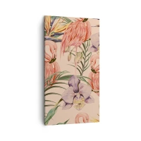 Bild auf Leinwand - Leinwandbild - Flamingos und tropische Blumen auf hellem Hintergrund - 50x70cm - Rosa Ballett in Blumen - Moderne Wanddekoration für Wohnzimmer und Schlafzimmer ARTTOR