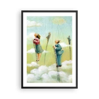 Poster in einem schwarzem Rahmen - Figuren, die Leitern in den Wolken erklimmen - 50x70cm - Hinter deinem Traum - Moderne Wanddekoration für Wohnzimmer und Schlafzimmer ARTTOR