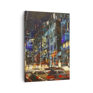 Bild auf Leinwand - Leinwandbild - Stadtnachtszene mit Neonlichtern - 50x70cm - Abendlicher Straßentrubel - Moderne Wanddekoration für Wohnzimmer und Schlafzimmer ARTTOR